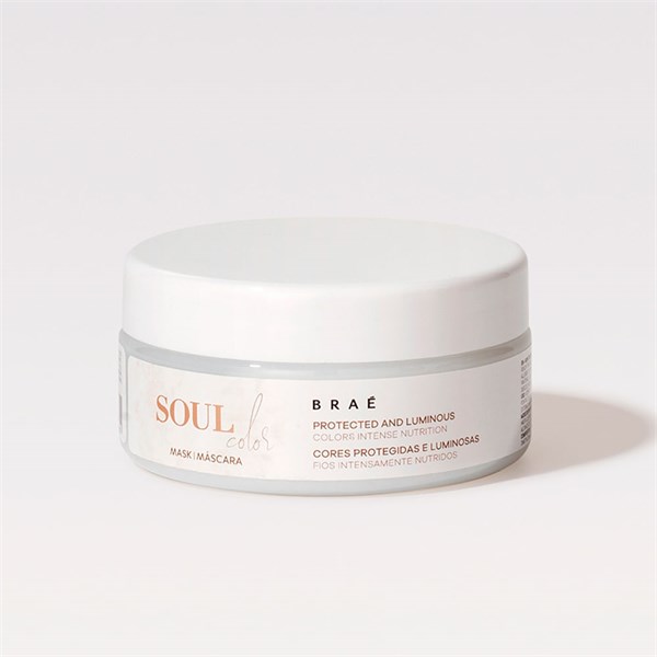 Máscara extremamente hidratante e nutritiva, desenvolvida especialmente para cabelos coloridos ou com mechas, sela as cutículas evitando que os fios percam os pigmentos depositados no interior da fibra proporcionando maior durabilidade da cor. Para cores muito mais duradouras, reluzentes, fios extremamente nutridos e fortalecidos, Braé Hair Care desenvolveu com a mais alta e exclusiva tecnologia combinando vitamina E, óleos de semente de uva, preteína do arriz, pantenol e blend de aminoácidos. Cabelos saudáveis hoje, para fios coloridos por muito mais tempo com Soul Color.